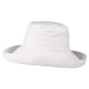 The Scala Twisted Raffia Boater – Petite Size is an elegant straw sun hat for women. The raffia tie around the crown can be used to size the hat down or to keep the hat rolled when packed. Inside the hat is a terrycloth sweatband for comfort. The Scala logo pin is located to the right side of the crown it keeps the tie attached to the hat.