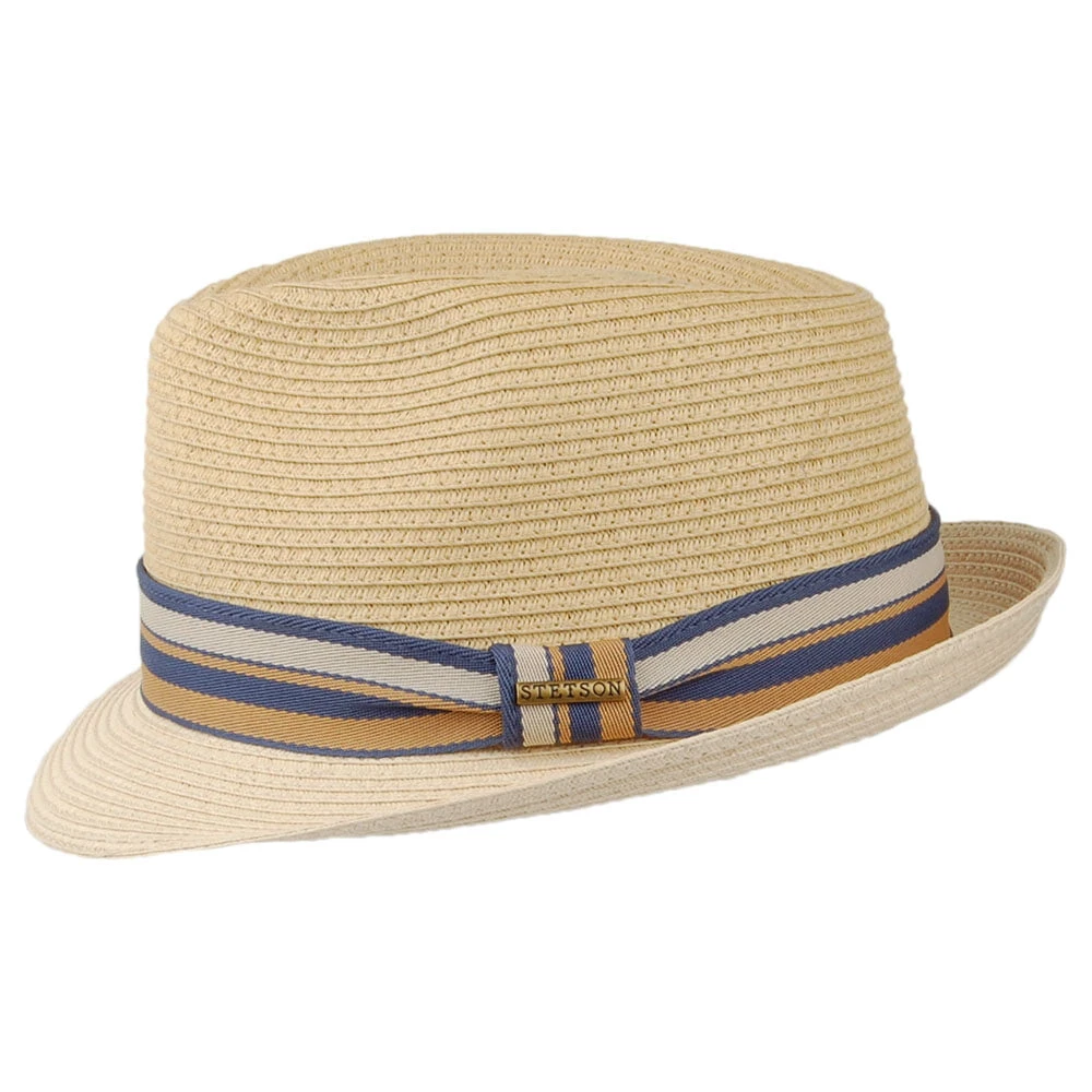 The Stetson Adams Trilby Hat in natural is a unique two tone style. There is a multi-coloured hat band finished with a Stetson side pin. The hat is unlined and comes with a cotton sweatband for additional comfort. Certified UPF 40+, this trilby fedora hat will be your perfect summer accessory on sunny days!