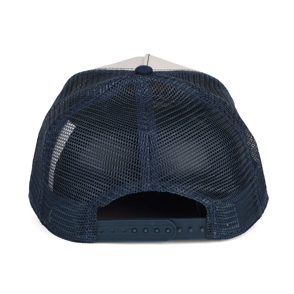 The Stetson American Heritage Trucker Cap in navy blue features a mesh back and a structured cotton front making it lightweight and comfortable for a warm day. There’s a Stetson embroidery on the front and the cap is finished with a pre-curved brim and adjustable snapback for easy sizing.