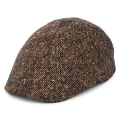 Stetson have made an incredible style with the Donegal Tweed Duckbill Flat Cap in navy-cognac. The hat has an elegant flecked pattern made of 100% virgin wool. There is a Stetson pin attached to the side. For added comfort and warmth there is a cotton lining.