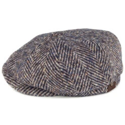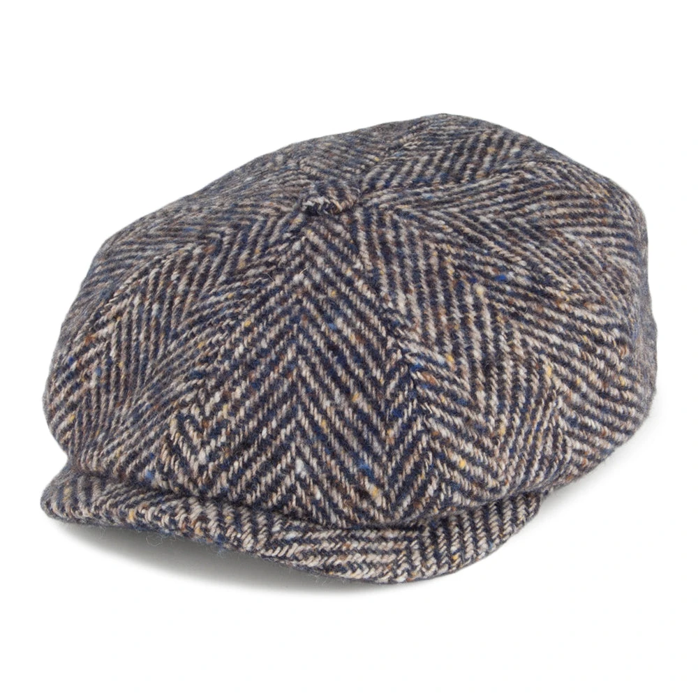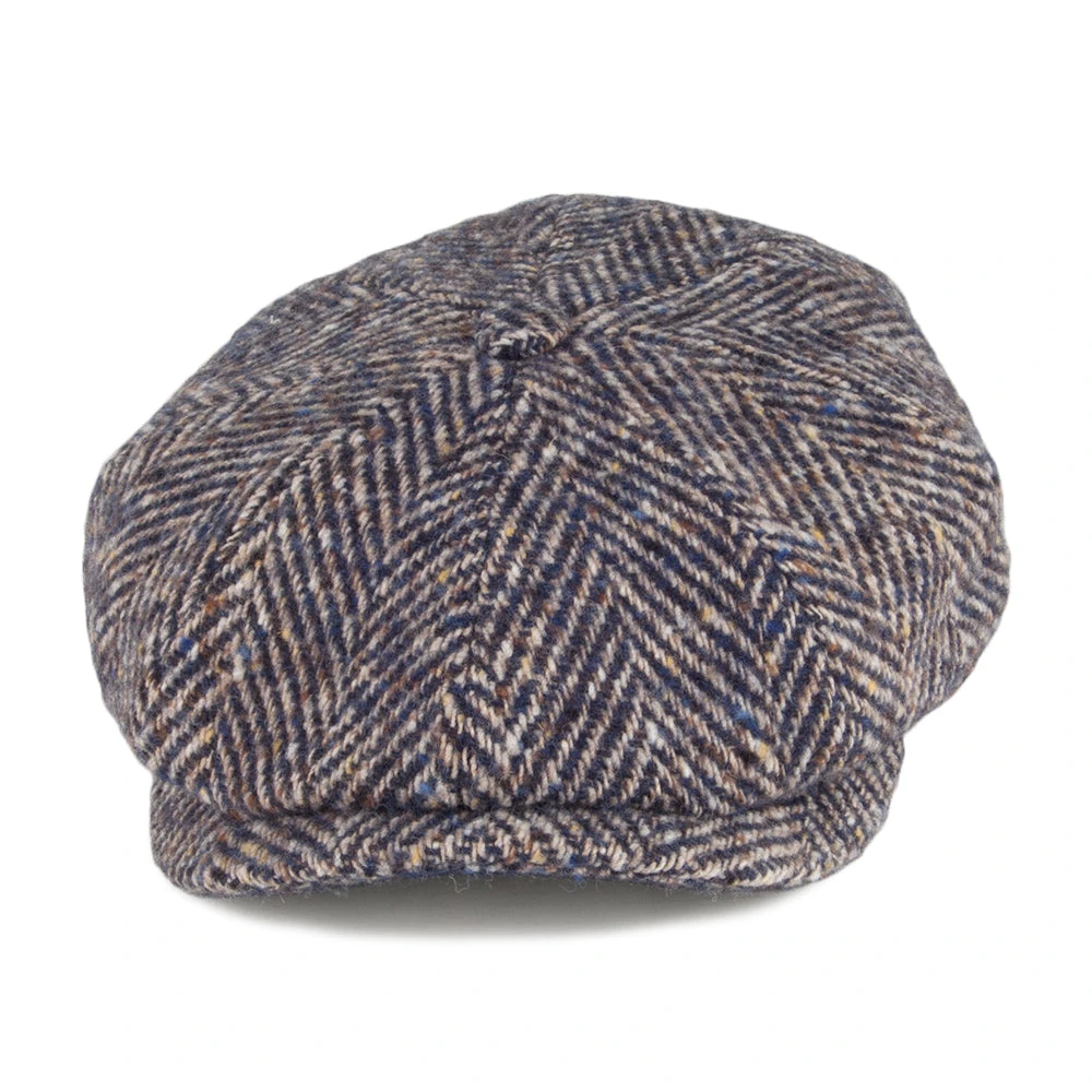 The Stetson Hatteras Herringbone Virgin Wool Newsboy Cap in blue-brown is a fine example of the quality and workmanship that the legendary brand can deliver. This newsboy features a blue and brown mix herringbone pattern with flecks of yellow and blue made from 100% virgin wool. The cap is a full 8/4 cut with a slightly extended sewn down bill and is fully lined on the inside. To finish there is a leather tab with a Stetson rivet at the back.