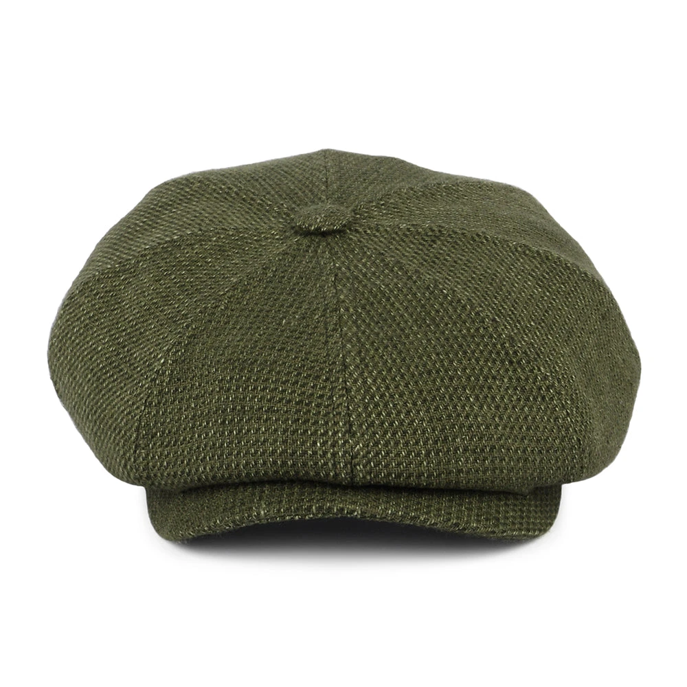 The Stetson Hatteras Linen-Cotton Newsboy Cap is a great looking hat for everyday wear. The cap is made of a linen cotton mix and features a Stetson pin attached to the side and a sewn down brim. The hat is unlined making it perfect for Spring and Summer.