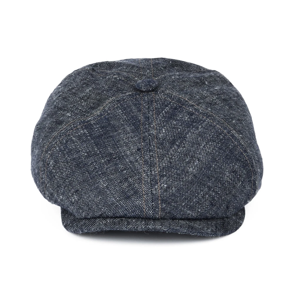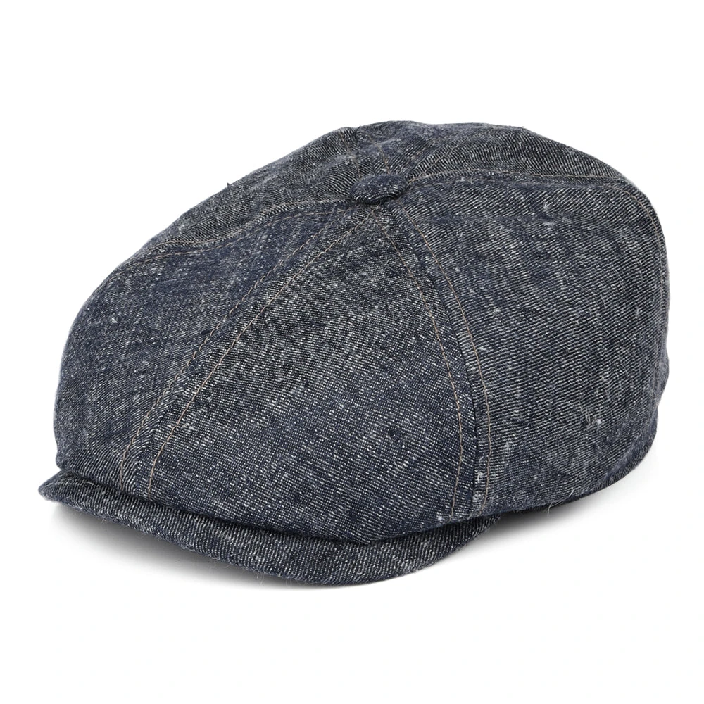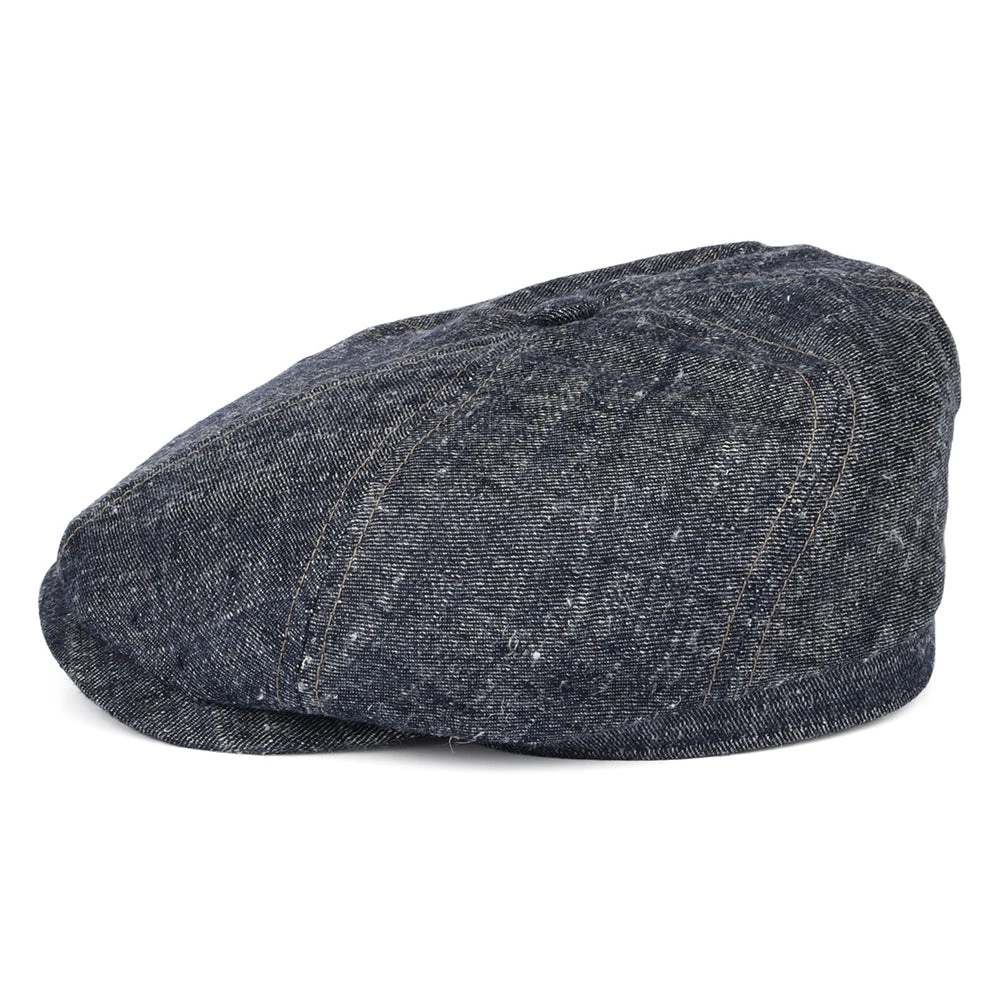 This is the Linen-Silk Newsboy Cap from Stetson in blue. This beautiful denim cap is made of a soft linen, silk and cotton mix. As the hat is unlined it allows a lot of breathability and is therefore ideal for warm summer days. The inside features a sweatband for comfort. The cap has a crown with 6 panels and a sewn down brim. Another instant classic from Stetson.
