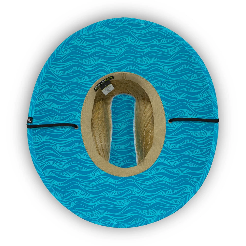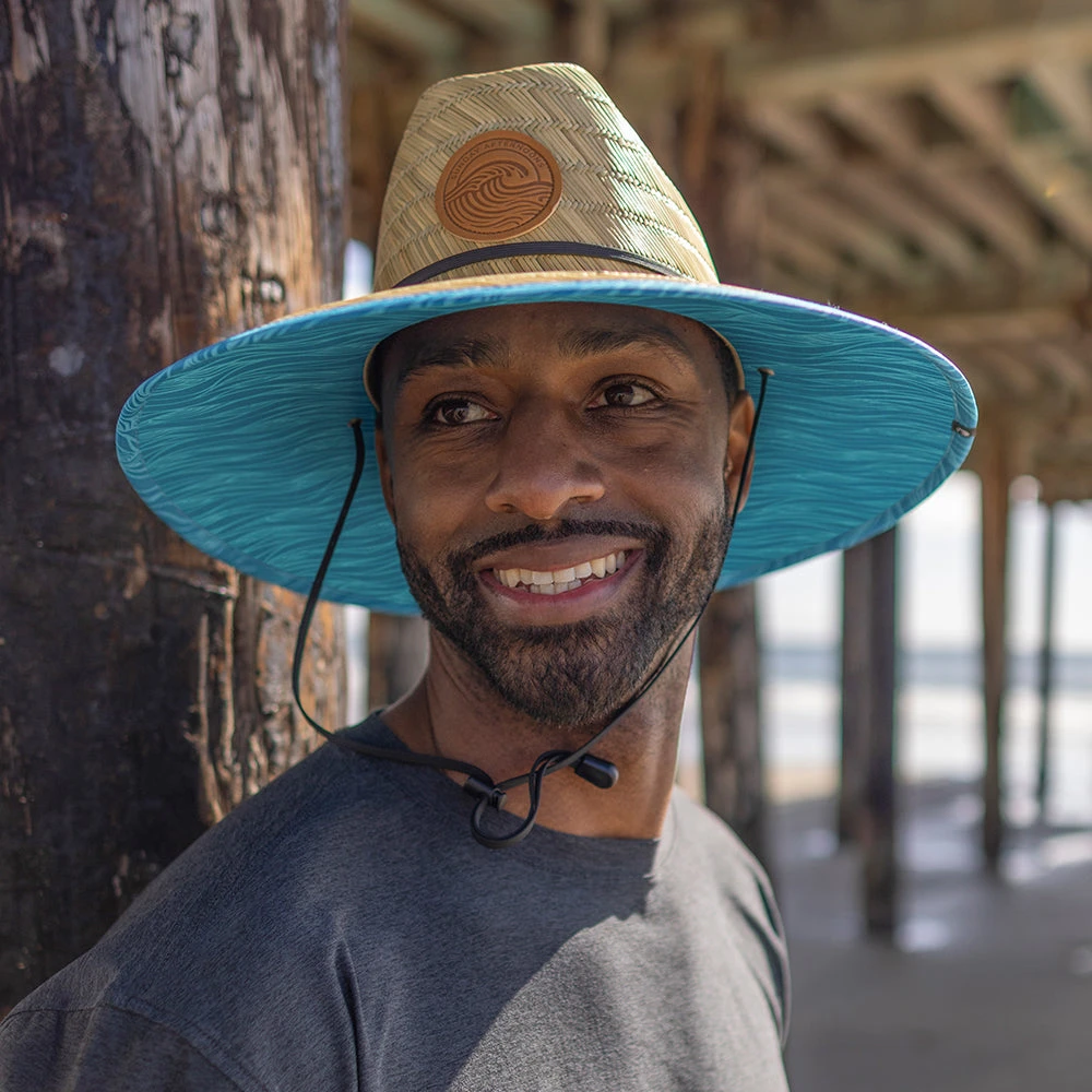 Sunday Afternoon have given this classic lifeguard straw hat a serious upgrade. This is an ideal for those who work and play in full sun. The Guardian Lifeguard Hat in natural-blue is made from 100% natural straw with a custom artwork patch on the front. The hat features an approximate 11cm wide brim, 12 cm high crown and adjustable chin strap to keep in place in the wind. The under brim and under crown are reinforced with UPF 50+ fabric for additional sun protection and the hat is finished with an exceptionally comfortably, stretch-to-fit elasticized sweatband.