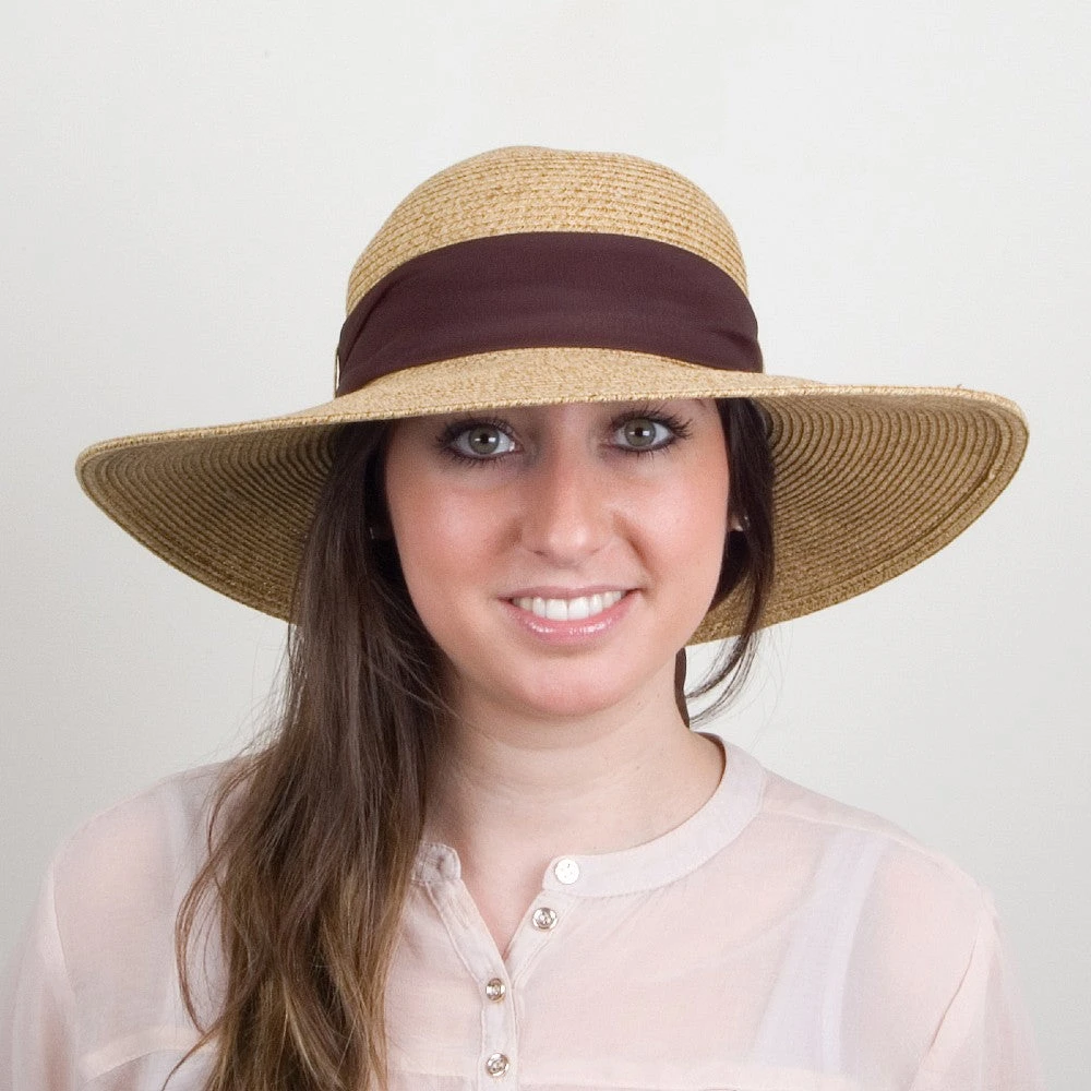 This is the sur la tête Beachside Sun Hat, featured in a wonderful colour called toast. Constructed of a beautifully coloured toyo straw, the hat is adorned with a chocolate coloured chiffon hatband that wraps delicately around the crown. So relax next to the ocean in the Beachside Sun Hat!