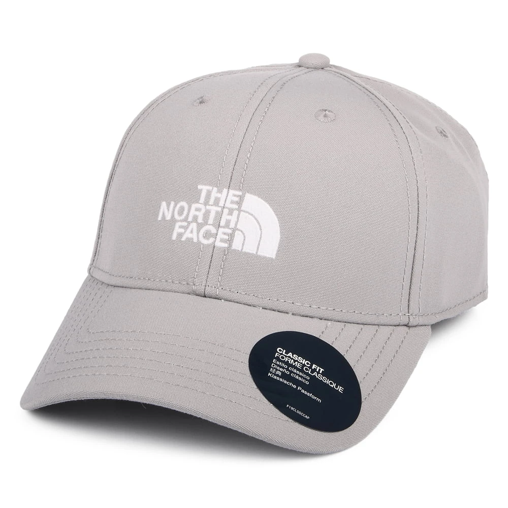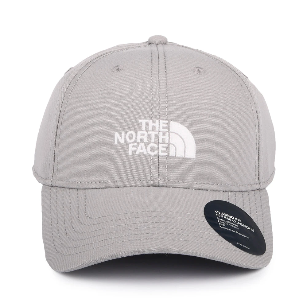 The North Face 66 Classic Recycled Baseball Cap in light grey is made of recycled materials and features The North Face logo embroidered on the structured front panels. There is a pre-curved brim and eyelets for ventilation. There is an adjustable strap at the back of the cap with a North Face metal buckle for a great fit.