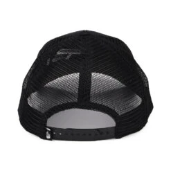 The North Face Mudder Recycled Trucker Cap in black has a structured front and recycled polyester mesh back. The North Face logo is on a patch at the front. An adjustable snap at the back helps you find the perfect fit.