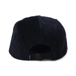 The Chunky Cord 5 panel cap in navy blue from The Quiet Life is made from 100% cotton. This cap features a Quiet Life patch sewn on the front of the cap, eyelets on the sides for ventilation, and an adjustable strap at the back so it fits most sizes comfortably. There is also a Quiet Life flip tag attached to the strap back.