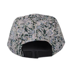 The Paisley 5 panel cap in dark green-multi from The Quiet Life is made in the USA with premium materials. This 100% cotton cap features a Quiet Life patch sewn on the front, eyelets on the sides for ventilation, and an adjustable strap at the back so it fits most sizes comfortably. There is also a Quiet Life fliptag attached to the strap back.