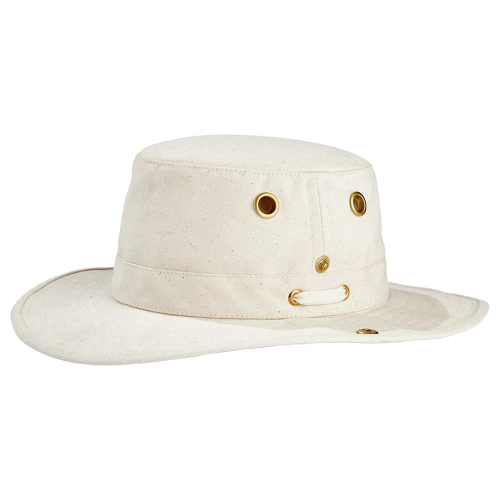 The T3 in natural is the most sought after Tilley Hat, the classic cotton duck canvas style everyone likes. Repels rain and mildew resistant. The hat has British brass grommets on the side. Comes in every human size, is machine washable and won’t shrink. Offers UPF50+ sun protection.