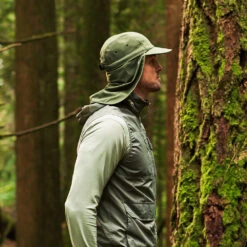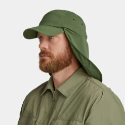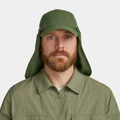 The Tilley Ultralight Sun Shield Cap in olive is a modern 5-panel design with a removable neck cape that offers protection during long days on the trail. It has been designed with functional features such as silicone eyelets for ventilation, ultralight and quick drying fabric, and an adjustable strap at the back. With a UPF 50+ sun protection and DWR (durable water repellent) finish, this cap is definitely made for the great outdoors.