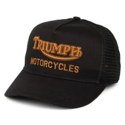 This is the Triumph Motorcycles Oil Trucker Cap in black. The cap features Triumph Motorcycles embroidered on the front. The mesh back has “For the Ride” embroidered and a Triumph flip tag. There is an adjustable snap to ensure a perfect fit.
