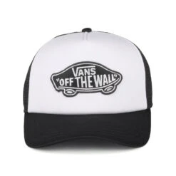 The Classic Patch Curved Brim Trucker Cap in black-white from Vans is a cap that you will wear again and again. The cap features a Vans “Off The Wall” patch sewn on the front. The cap has a pre-curved brim and the mesh back will enable ventilation during the warmer months. The adjustable snap at the back means most head sizes will fit comfortably.