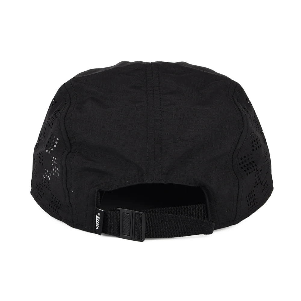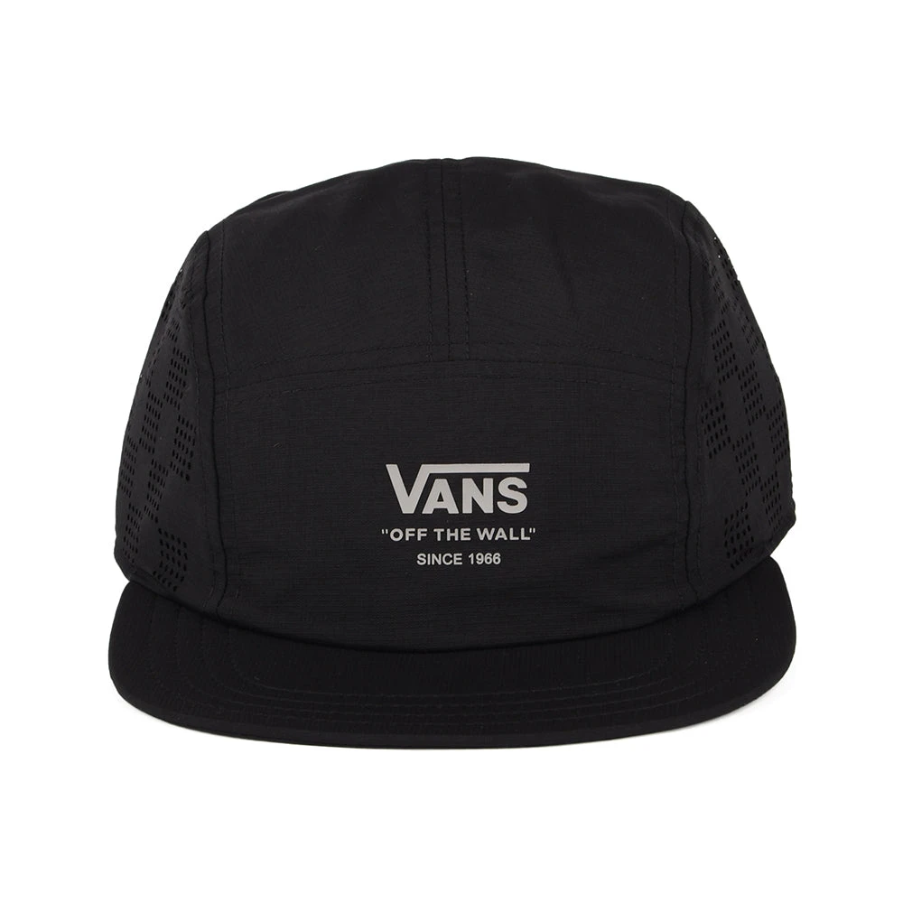The Outdoors 5 Panel Cap in black is another exceptional design from Vans. The sleek design features the Vans logo and motto printed on the front of the cap. The sides feature a chequered mesh for ventilation on a hot day. There is an adjustable strap at the back with a Vans flip tag to ensure a great fit.