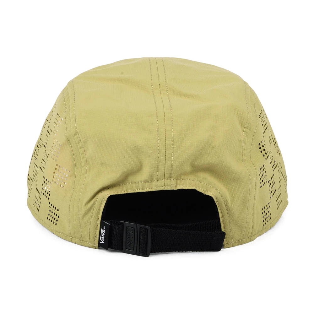 The Outdoors 5 Panel Cap in sand is another exceptional design from Vans. The sleek design features the Vans logo and motto printed on the front of the cap. The sides feature a chequered mesh for ventilation on a hot day. There is an adjustable strap at the back with a Vans flip tag to ensure a great fit.