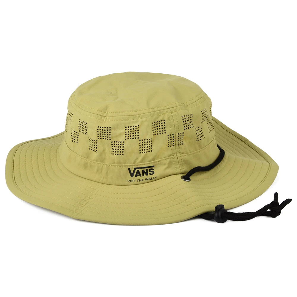 The Vans Outdoors Boonie Hat in sand features a unique checker laser cut vents pattern in the crown and a Vans logo “Off The Wall” logo on the side. The hat comes with an adjustable chincord to keep it secure on your head and it UPF 40+ rated for optimal sun protection. Don’t miss out on this great new boonie hat!