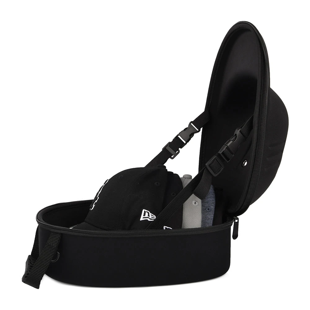 The Village Hats Baseball Caps Hat Case is an essential piece of hat storage and transport, all in one. It provides headwear collectors a great way to transport, store, and protect their baseball caps. This crushproof neoprene case stores five caps and features four eyelets for ventilation, a removable shoulder strap for easy transport, and a convenient double zip closure. The elasticised adjustable straps ensures the lid remains open with ease, unclip the buckles for a complete open display.