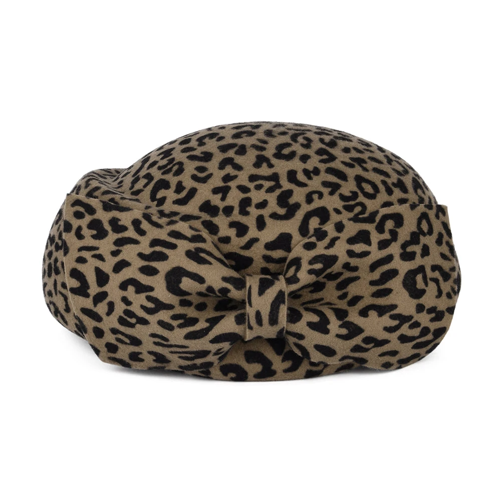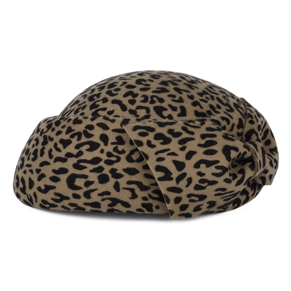 The Whiteley Avery Wool Pillbox Hat with bow in leopard is a fantastic wool felt pillbox hat that has been handcrafted in England. A decorative bow adorns the right side of the hat. An elastic band secures the pillbox to your head and ensures you look fabulous!